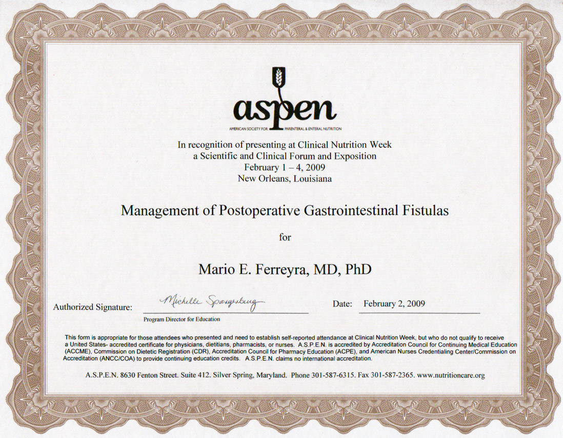 | Tuvimos el honor de ser invitados a organizar una presentación sobre manejo protocolizado de fístulas entero cutáneas postoperatorias en base a nuestro protocolo de 14 (catorce) años. Dicha presentación en New Orleans, USA (2009), se hizo también en Cannes, Francia (2003), Haydock Park Cheshire, Liverpool, England (2004) y en Savannah, Georgia, USA (2014). Todas estas conferencias se presentaron en el idioma inglés pero la traducción al español se encuentra en el capítulo 4 del libro publicado en el 2023. | |